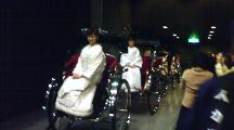 前日より泊まり込みのスタッフ2名と共に本日のメイン・イベントの準備。午前11時半の会場入りは余裕だと思っていたが、自分は次の週末の準備も並行してやる必要があり、結局5分前の会場到着となった。平日のイベント開催ということもあり、本来のスタッフだけでメンバー11名を揃えるのは無理があり、多くの協力者の方に力を貸してもらった。今回自分たちの役割は「花嫁化粧着付競技」部門に参加する白無垢姿のモデルさん11名がステージに登場する際のショー演出。出番としてはわずか2、3分のあくまでも黒子役。が、ステージにスタッフ全員が揃うのは本番一発のみで、開演ぎりぎりの時間までステージ裏でリハーサルは続く。会場内が暗転し、いよいよ本番。緊張感は否が応にも高まるが、あとは運に任せるのみ。上下(かみしも)6名と5名に分かれ、その先頭に立つ自分の一歩で幕は開けられた。リハーサルの時に最も懸念していた、歩調を合わせる必要のある下の先頭スタッフの姿が、暗闇の中でもよく見える。停止するラインで待機されている裏方スタッフの方のサインもばっちり。全員の動きを統一し、外回りで踏み台を取りに行き、モデルさんの手をとって降壇していただく絵図も自分の目の届く範囲ではうまくいっている。ほぼ成功したことを確信し、モデルさんに小声でささやいた。「行ってらっしゃいませ」一分ほどのちBGMの曲調が変化し、あくまで脇役の自分たちは静かに退場。ゆっくりと一歩一歩をかみしめるように歩み、舞台袖にたどり着く。裏方スタッフの方が迎えてくれる場所にたどり着いた時には、思わずこみ上げてくるものがあった。観客席の方にとってはただの歩みにしか見えないかもしれないが、自分の中では何だか創業以来の過去12年間のことが走馬灯のように頭の中を駆け巡ったからだ。本当はここには書ききれないが、多くの方々のお陰で本日のイベントに参加させていただき、また無事終了できたことに感謝したい。エンドロール風に本日の現場スタッフのみ最後にご紹介させていただきます。Jinrikiya StaffHideya OgushiToshiaki FujiokaShuji MatobaKiyohiro KasaharaYoshimitsu KamitaniDaiichiroh TogamiDaisuke MitaraiTomohiro Inoue(Yamaga Jinrikisha Staff)Kohsuke NakanishiTakuya IwakumaTaichi Hidaka(+Mix Staff)Special Thaks to Honda&Baba(Planning-nac Staff)ご支援クリックいつもありがとうございます!→人気blogランキング<起業・独立部門>クリックしていただくと、一票投票されるシステムになってます。ただいま24位に。
