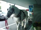 豪雨の中、早朝より佐賀方面へ。某ホテル・ブライダルフェアでのご用命だが、雨天決行との連絡を受け現場に向かう。佐賀市内に入ると至るところで冠水し、道路によっては運河と化していた。この状況では今日の仕事はお手上げと観念しながらも、とりあえず現地入り。時折激しく降る雨を横目に、屋外の展示物状態で終日待機となった。本日の集客の目玉として、もうひとつの演出アイテム「馬車」がやってきた。実物を見るのは私も初めてのことだが、馬も乗り物も想像以上に大きくて、さすがにインパクトがある。可愛い白馬を見れば誰だって近寄って来るくらいに動物人気は絶大で、今日は完全に脇役となってしまった。が、同じく「乗り物サービス」を提供する人間として参考になることも多く、勉強になった。白馬(牝)のクルミちゃん、お疲れ様!福岡市内へ19時頃戻ったものの、雨が断続的に降っているため、本日の筥崎宮夏越まつり参加は中止。土日の二日間続けての大雨で、気持ちとしては不完全燃焼で終わってしまった。ただ帰りの高速道路で知った九州道(福岡IC~太宰府IC間)の土砂崩れでは、7月27日朝現在二人の方が亡くなっており、事故に遭うことなく無事一日を終われるだけでも感謝せねば。ご支援クリックいつもありがとうございます!→人気blogランキング<起業・独立部門>クリックして下さると、一票投票されるシステムになってます。ただいま44位に。