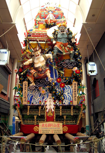 博多祇園山笠は翌日早朝の追い山でフィナーレを迎えるため、櫛田神社境内の飾り山を除き本日で見収め。7月1日に公開されてからわずか二週間だけのはかない存在だ。そんな山笠のご案内を兼ねた観光人力車営業も本日で最終。あいにくの断続的な雨の下、営業しようかどうか迷われたが、スタッフ一名からの催促のメールで、夕方より開始することに決定。例年通り、博多リバレイン前に立つ飾り山の前で待機してみたが、週真ん中の水曜日ということもあり、行き交う人は地元の方ばかりで反応はさっぱり。しかも時折強く降る雨のために人影もまばらで、結局成果は惨憺たるもので終わった。 成果を上げることのできなかった理由の一つは、私自身の精神的トラウマに間違いなく起因している。創業後14年も経過すると、どうしても仕事に対する先入観が強くなり、中々冒険ができ難くなるし、過去の悪いパターンの記憶を思い出して自ずと行動範囲が狭くなる。やはり今後は、もっともっと先入観のない若手スタッフに仕事を任せていくよう、仕向けていかねばならないと大いに反省させられた。※本日の「走る飾り山」【八番山笠 上川端通】・表標題:「博多風神雷神恵」(はかたふうじんらいじんのめぐみ)・人形師:田中比呂志氏・内容説明 自然を構成している天地万物の一切から、それぞれの力によって生かせてもらっているが突如として姿を現し閃光を放ち、大音響と共に荒れ狂うもの、それが私達にとって最も恐ろしい風神雷神です。・見送り標題:「忠勇士景清」(ちゅうゆうのしかげきよ)・人形師:田中勇氏・内容説明 源氏に敗れ岩屋に捕われた、平家の武将景清は、敵の情は受けぬと、何も口にせず平家重宝の在処も白状しない。畠山重忠は阿古屋親子を責める。怒った景清は、牢を破り、重忠と戦場で再び雌雄を決しようと重忠に告げる。 以下のリンクをクリックして下さると、一票投票されて人気blogランキングに反映されるシステムになっています(一日一票)。毎日更新の励みになります。→人気blogランキング<起業・独立部門>ご支援クリックいつもありがとうございます!ただいま20位に。