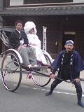年末の三連休初日。午前中はスタッフ2名で披露宴会場二現場での入場演出に出向く。私の出向いた会場では、乾杯セレモニーまでが終了して一段落し、会場内に参列されている方向けに人力車にご乗車されての記念撮影タイムを設定。このタイミングは、司会の方の音頭次第で女子中心に盛り上がりを作ることができる。演出時のみならず、こういった活用の仕方も大いにお薦め。本日めでたくご結婚の新郎新婦様には、改めてご祝福申し上げます!! 観光現場に戻っての昼下がり。観光拠点となっている場所の事務局にケーキを差し入れしてしばしのコーヒータイム。女性スタッフの中に男性2名のみが混じって、久々にくつろぎ時間を過ごしたが、とっても心が和むひと時。考えてみれば前職が化粧品会社ということもあり、(周囲にいらした得意先の方の平均年齢はかなり高かったが)(笑)かつてこういう光景は日常茶飯事であった。化粧品自体は女性中心の世界であるが、その中にいる希少な男性は人間関係の潤滑油みたいな存在だったと思う。今現在やっている仕事はスイーツ同様決して生活必需品(サービス)ではないが、非日常の環境を演出して癒しを与える、心の潤滑油を目指したい。 画像は、できあがったばかりの半纏を着用したスタッフ2名。 以下のリンクをクリックして下さると、一票投票されて人気blogランキングに反映されるシステムになっています(一日一票)。毎日更新の励みになります。→人気blogランキング<起業・独立部門>ご支援クリックいつもありがとうございます!ただいま17位に。