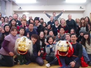 三連休最終日。午後より依頼を受けていた新春パーティ内での祝獅子舞イベントに出演するため大名の元気日本語学校へ。昨年まで早朝勉強会の会場として研修室を提供して下さっていたご縁。当然今回会場内にいらっしゃるのは、大半が日本語を学ぶために海外から来日されている留学生の方。狭い会場内に50名もの方がひしめき合う中での演舞のため、通常の披露宴会場とは勝手が違い、動きが思いっきり制約される。もう一名のスタッフとの打ち合わせの中でもそのことが最も懸念されたが、蓋を開けてみれば想像していた以上のリアクションがあり、不安は一気に吹き飛ぶ。 獅子頭の口からお祝いメッセージを書いた巻物が飛び出すシーン、そしてフィニッシュと、最も盛り上がるべき場面の反応が大きく、いつも以上に大きな歓声となって跳ね返ってきた。やった~、大成功!!ここのところちょっと不完全燃焼でスランプに陥っていたテンションが一気に上がった。勝因は、前日のダンスの先生との原点に立ち返った談話と事前のイメージ・トレーニングにあると自分では思う。芸事は一生をかけて技を磨いていくものであり、更なる鍛練と柔軟性のある身体作りが必要なことを痛感した。この度ご用命下さったカービーさんには改めて感謝! 以下のリンクをクリックして下さると、一票投票されて人気blogランキングに反映されるシステムになっています(一日一票)。毎日更新の励みになります。→人気blogランキング<起業・独立部門>ご支援クリックいつもありがとうございます!ただいま139位に。