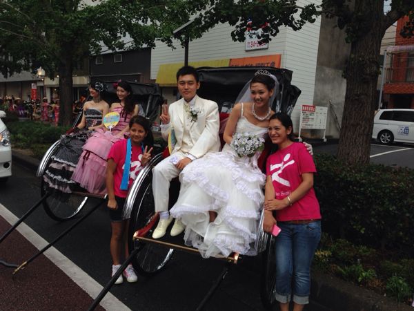 断続的な雨の下、4日(月)は午後より久留米市内へ出張。冠婚葬祭関連の会社からのご依頼で、この日市内中心部で開催されたパレードに参加。洋装の新郎新婦様役の方、並びにドレス姿の女性二名にご乗車いただいて通行規制された中心部(明治通り)をパレード。直前まで雨は小康状態だったものの、パレード途中にわか雨に見舞われる。が、大きなダメージなくゴール地点にたどり着き、無事終了。昨年は大雨で中止、今年も雨の中ぎりぎり実行できた水の祭典には水がつきものなのだろうか?いずれにしても博多人力屋へのご用命、本当にありがとうございます!! ご依頼された会社(婚礼部門)では現在55周年イベントを開催されており、今回のパレードもその広告・宣伝活動の一環。一般のお客様の目を惹きつけ易い人力車を活用したパレードは、イベント仕事として多々需要あり。Written by 人力車の博多人力屋 以下のリンクをクリックして下さると、一票投票されて人気blogランキングに反映されるシステムになっています(一日一票)。毎日更新の励みになります。→人気blogランキング<起業・独立部門> ご支援クリックいつもありがとうございます!ただいま150位に。