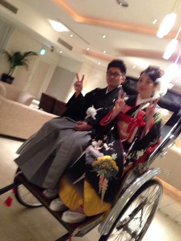 またもや朝から雨天となった日曜日、やむなく観光営業は中止。この日は午後から室内での披露宴演出現場があり急遽私が担当することに。大安吉日だからなのか、トラックで駆けつけた会場の駐車場は満車状態。ほどなく開宴となり、新郎新婦様を先導する形で披露宴会場内に登場。高砂の席への登壇前に「どうぞカメラをお持ちの方は…」のアナウンスが流れ、この日最初のシャッターチャンス。短時間ながらフルに活用して下さり感謝です。どうぞお二方末永くお幸せに!! この日のNHK大河ドラマ「軍師官兵衛」は、ようやく舞台が九州に変わり、より親近感が湧いてきた。過去最終回まで見届けたことのない(笑)私の、初の記録になるかも!?Written by 人力車の博多人力屋 以下のリンクをクリックして下さると、一票投票されて人気blogランキングに反映されるシステムになっています(一日一票)。毎日更新の励みになります。→人気blogランキング<起業・独立部門> ご支援クリックいつもありがとうございます!ただいま140位に。