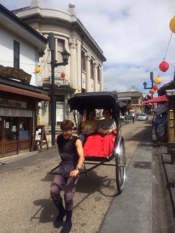 降水確率50%の予報が出ていたものの、出張二日目の山鹿は曇りで予定通り観光営業開始。その後は時折晴れ間も出るほど天候に恵まれ、夕方までの営業を無事終了することができた。当初同じく観光営業応援で来るはずであった隣町菊池メンバーは、朝からの豪雨で出張取りやめとなり明暗が分かれた。 この日は前日ご予約をいただいていた東京からお見えのご年配の婦人お二人の60分フルコースからスタート。今回の旅行について伺うと、日田・玉名・山鹿・平山・天草を転々とする予定でしかも移動はすべてタクシーとのこと。行先も予定も食事処も自分たちで自由に決めることのできる気ままな旅は、ある意味「ななつ星」よりもぜいたくかも!?今回も山鹿人力車スタッフ始め観光協会の方、そして山鹿の町の方々には大変お世話になり、ありがとうございます! Written by 人力車の博多人力屋 以下のリンクをクリックして下さると、一票投票されて人気blogランキングに反映されるシステムになっています(一日一票)。毎日更新の励みになります。→人気blogランキング<起業・独立部門> ご支援クリックいつもありがとうございます!ただいま118位に。