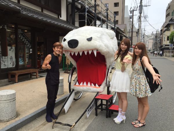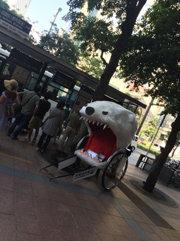 8月15日16日は2006年より山鹿灯籠まつり観光営業応援で出張してきたが、今年は南国白くま号人力車営業のため久々に博多に滞在。が、観光拠点の人出は極端に少ないため、午後より天神ど真ん中へ移動。より目立つよう西鉄コンコースの待合場所近くにセッティングして通行人の方の反応を見る。ここでご乗車されたのは成人女性一名のみであったが、胸に「原発○○」背中に「旅人」なるゼッケンをつけた方。もう一名のスタッフが案内したのだが、移動途中で「叫んでもいいですか?」と質問されたので、丁重にお断りしたとのこと(笑)。世の中には色々な種類の方がおられるようで。。 その後「マリンメッセ」行きバス停に長蛇の列ができ、白くま号は取り囲まれてしまった。誰かのコンサートだろうと思って聞いてみると「西野カナ」さんとのこと。しばらくそのまま放置した後で撤収となった。写真撮影をされる方は数多くいらっしゃったが、その具体的な宣伝効果は未知数。残すところ半月となった南国白くま号人力車、残暑にめげずに出没します! Written by 人力車の博多人力屋 以下のリンクをクリックして下さると、一票投票されて人気blogランキングに反映されるシステムになっています(一日一票)。毎日更新の励みになります。→人気blogランキング<起業・独立部門> ご支援クリックいつもありがとうございます!ただいま92位に。