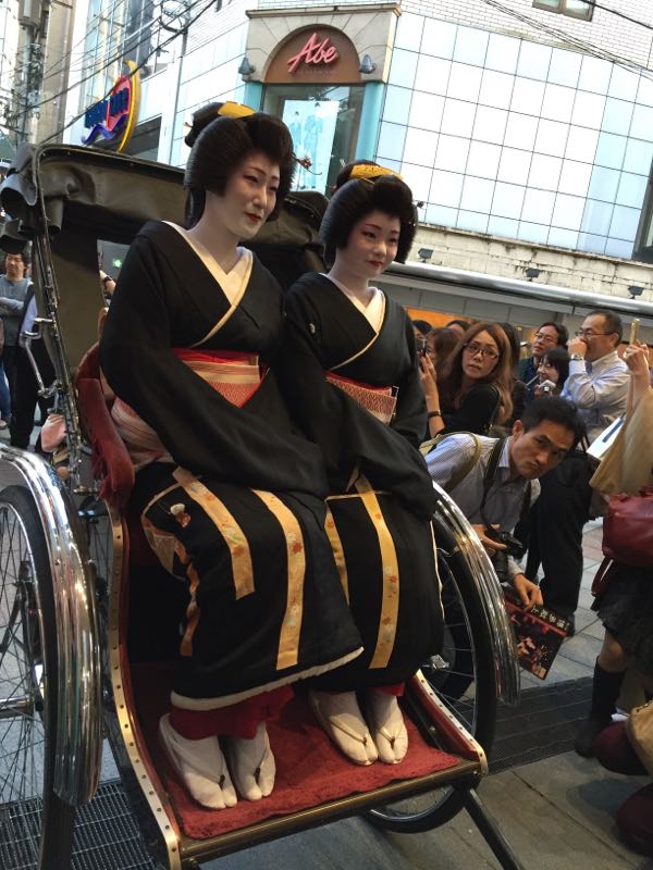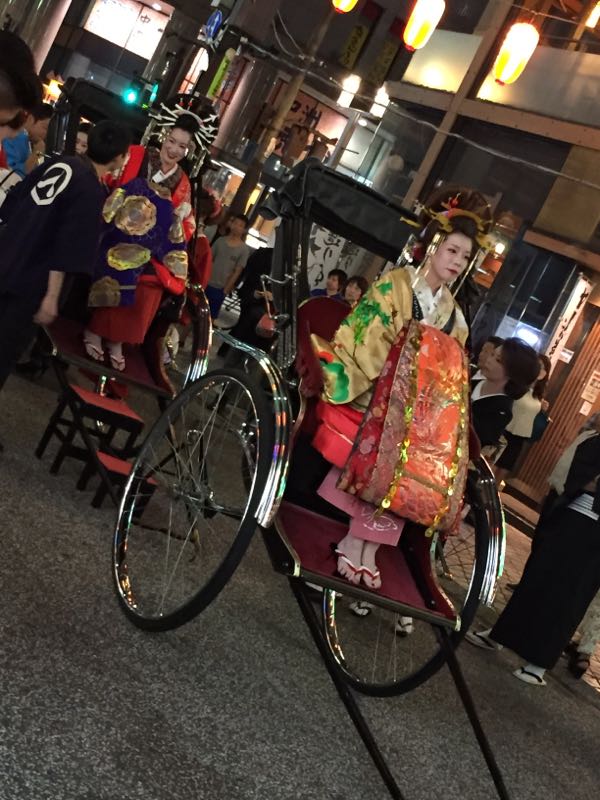 10月8日(木)は夜の出勤(笑)。今週木金の夜が中洲まつりにあたり、ここ何年か恒例行事となった美容室オーナー様主催の花魁道中送迎に人力車2台で。木曜夜ということで人混みはそれほどでもなかったが、花魁以外にも着物の女性陣と人力車があるだけですごい集客効果。一般の方に混じって訪日外国人や近隣のホステスさんなんかも押しかけ記念撮影に大人気!!花魁道中は中洲大通りのミスドさん~ふくやさん本店前までの短いルートだったが、このメインストリートど真ん中を歩行者天国で堂々と通り抜けるのは何とも気分がいい♪ご用命、毎度ありがとうございます! 今回スタッフとして協力してくれたのは来年大学卒業のアスカ君。無事就職先も決まり久々の出動となった。来春一旦は研修で関西に出向き、その半年後には全国の支店等に営業として配属されるらしい。何だか自分が就職した頃のことを思い出すが、一旦会社に入れば与えられた環境の下、自分の好き嫌いに関係なく人間関係を築かなければならないという現実に直面するだろう。想像以上に過酷な現実にもまれて、否応なしに人間的に成長していくことと思う。今後社会人としての活躍を祈ります!Written by 人力車の博多人力屋 以下のリンクをクリックして下さると、一票投票されて人気blogランキングに反映されるシステムになっています(一日一票)。毎日更新の励みになります。→人気blogランキング<起業・独立部門> ご支援クリックいつもありがとうございます!ただいま62位に。