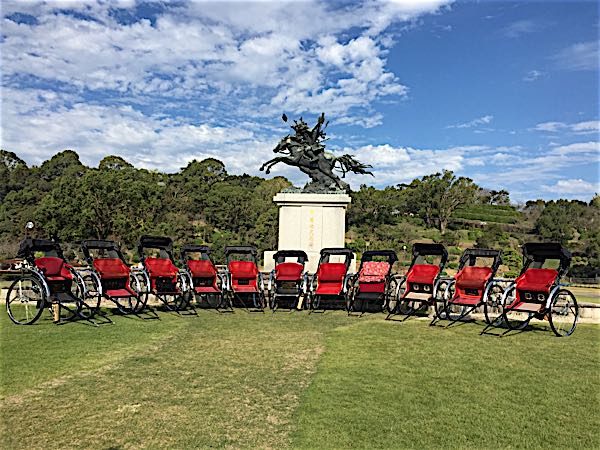 10日ほど前の急なご依頼に対応し、初訪問となる有田ポーセリングパークへ出張。今回の趣旨は、大型観光客船で立ち寄られる中国からの観光客歓迎イベントの一環とのこと。福岡の和太鼓チーム野和太鼓さんに伊万里の女ひょっとこ(踊り)、有田皿踊りの皆様に加えて何故か人力車(笑)。昼食と買い物に立ち寄られた中国の方に、短時間ながら和風なものを体験していただくイベントとなった。人力車は2台ご用意できたもののスタッフは平日とあって私一名のみで、ご依頼された関係者の方にお手伝いいただく。人力車で試乗体験されることを想定していたが、あまりにも大勢の方が対象のため自然と写真撮影だけの流れに。太鼓や踊りの実演が終われば写真撮影に人が移動してくるという流れで、約4時間はあっという間に経過した。 中国人だけをターゲットにしたイベントは今回初めての体験で、色々な気付きと学びも多かった。・人力車にご乗車されての写真撮影は好評で、ほとんどがスマホ利用(iPhone比率高し)。・自撮り棒利用の方も多数で、旅行先での記念撮影大好きなイメージ。・基本「中国語」で話しかけられるので、先方の言葉は意味不明。が、何となく言わんとすることはわかるので、こちらも身振り手振りで応対し何とか伝わった。・後からスマホの翻訳機能アプリのことを思い出し、中国語にも対応しているため今後は活用可能。・当方からは終始「謝謝」。相手側の中には「こんにちは」を積極的に言おうとされる方もいらっしゃり、先入観を取り払ったコミュニケーションの大切さを痛感。この度お世話になりました関係者各位に改めてお礼申し上げます‼︎Written by 人力車の博多人力屋 以下のリンクをクリックして下さると、一票投票されて人気blogランキングに反映されるシステムになっています(一日一票)。毎日更新の励みになります。→人気blogランキング<起業・独立部門> ご支援クリックいつもありがとうございます!ただいま74位に。