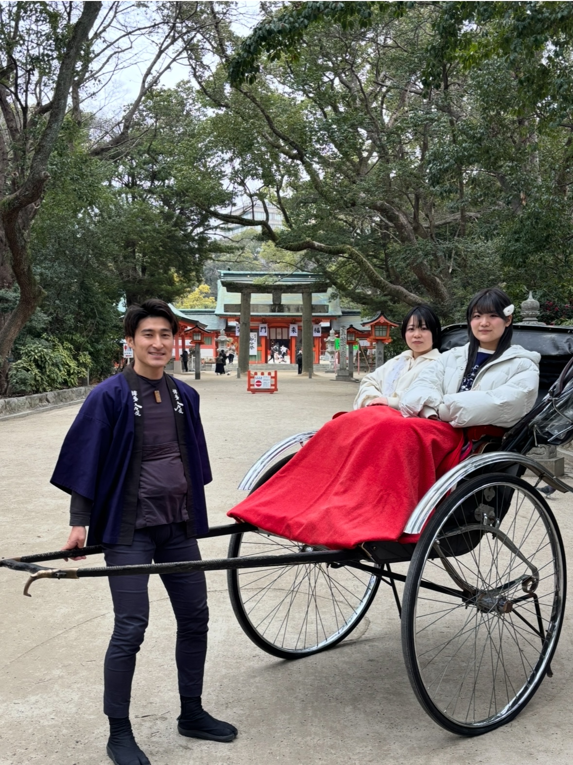 週明け月曜日、朝から太宰府へトラック移動。現地で人力車セッティングし、西鉄太宰府駅前で合流したのは、横浜&東京(目黒)よりお見えのお姉さまお二人。長時間ご乗車NGとのことで、駅前から参道を避けて迂回し、天満宮入口まで30分のご案内。途中、光明禅寺や藍染川と梅壺侍従蘇生の碑を経由して。現地に出向いた時限定で、お試し送迎コースとして活用できそう。この日は時間に余裕あり、天満宮参拝、おみくじにも同行し記念撮影も。この度の貴重なご用命、本当にありがとうございます!!◇翌28日(火)より鹿児島方面へ研修(視察)旅行のため、1月30日(木)まで博多の観光拠点には不在です。ご了承の程お願い申し上げます。☆拙著『好き飯』博多の人力車 裸一貫起業術2019年11月21日発売!〜雇われず『好き』な仕事で『飯』を食う〜※「独立起業」なん か無縁で、今の職場で一生安 泰だと思ってる方には、お薦めしません。Written by 人力車の博多人力屋以下のリンクをクリックして下さると、一票投票されて人気blogランキングに反映されるシステムになっています(一日一票)。毎日更新の励みになります。↓起業・独立ランキング3 ご支援クリックいつもありがとうございます!ただいま12位に。