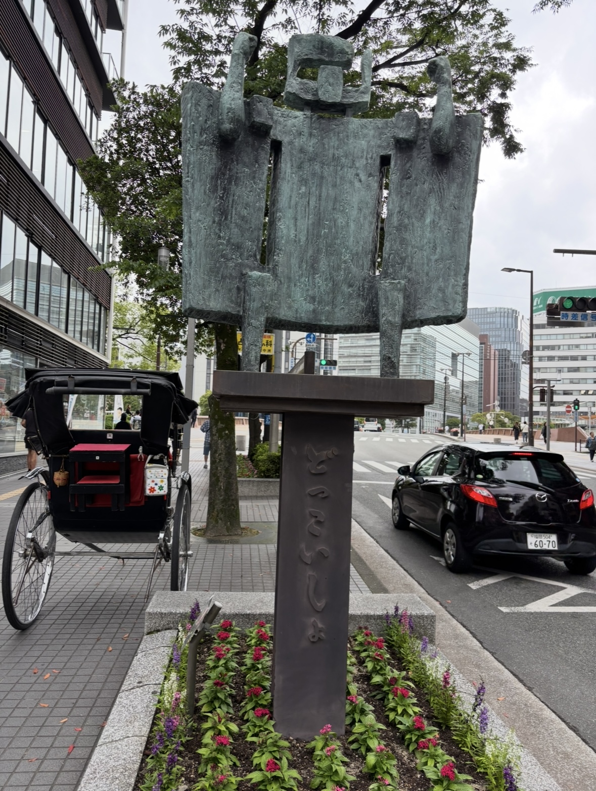 週末土曜日の観光拠点セッティング。トラック車検中のため、車庫よりスタッフ2名で自走。お昼過ぎまで待機してみたが観光無風状態で、ほとんど動きなし。午後より一旦流し営業へ向かい、中洲を横切って明治通り~西中洲~国体道路~キャナルシティと周遊。その後、上川端商店街入口辺りで李さん宛声掛けあり、韓国&日本人男性お二人をお乗せして、お試しコースへ。当日の貴重なご用命、本当にありがとうございます!!◇明治通り沿い、一蘭本店の向かい側歩道(車道側)に設置されているモニュメント(パブリックアートと呼ぶらしい)どっこいしょ。30年近く福岡に住んでいながら初めて気づいた。全体の形は「聖福寺の雲水(禅僧)の姿」、奇妙な頭の孔は「袖の湊の形」、胴体の2つの孔は「左が那珂川(当時は比恵川)、右が石堂川(御笠川)」を表しているそう。滅多に通過しない場所だが、新たな雑学知識の引き出しがまた一つ。◇本日夕方、車検を終えたトラックの引き取り。今回はバッテリー(大型×2)交換まで含め総額15万円超(-_-;)。今月の売上利益が一気に吹き飛ぶが、改めて踏ん張ってリベンジを!☆拙著『好き飯』博多の人力車 裸一貫起業術2019年11月21日発売!〜雇われず『好き』な仕事で『飯』を食う〜※「独立起業」なんか無縁で、今の職場で一生安泰だと思ってる方には、お薦めしません。Written by 人力車の博多人力屋以下のリンクをクリックして下さると、一票投票されて人気blogランキングに反映されるシステムになっています(一日一票)。毎日更新の励みになります。↓起業・独立ランキング3 ご支援クリックいつもありがとうございます!ただいま11位に。