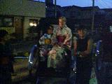 昼間の明るい時間帯には、激しい猛暑の下ほとんどご乗車は期待できず、夕暮れ時から涼しくなってやっと乗車希望者が現れる。いつもどおり写真撮影を自由にやってもらうことにより、乗車希望への誘い水とする。夜になって本来のペースに乗り、一昨年とほぼ同様の売上を上げることができた。