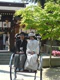 平成21年4月10日(金)は大安吉日にあたり、満月の日。朝からニュースで天皇皇后両陛下のご結婚50周年記念日の報道がなされているのを横目に見ながら、昼間の仕事の準備。櫛田神社での挙式後、ホテルまでの送迎へのご用命だ。神社に出向いてみて初めて、朝のニュース報道と本日が記念日にあたるということが頭の中で結び付いた。本日の新郎新婦様に確認してみたところ、予め記念日にあたることも意識しての日取り設定であった。見事な晴天と汗ばむ位の陽気に恵まれて、そよ吹く風が本当に心地いい。目に青葉、風薫る季節という表現がぴったりの日に、新たな門出を迎えられたお二方の弥栄(いやさか)を心より祈念致します。