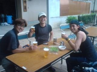 神社境内の涼しい風に吹かれながら、一緒に仕事したスタッフとの一杯は格別!更に驚いたことに、普段地域の賑わいを作ってくれているお礼だと言うことで、生ビールの代金を受け取ってもらえなかった。いやー、博多祇園山笠が地盤の地域の方々の懐の深さに感動させられました。この場をお借りして改めてお礼申し上げます!!