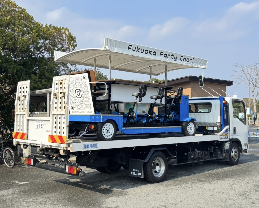 ◇年明け1月に博多の車庫に引き揚げ、休眠中のイベントカー 福岡パーティチャリ 。今のところ予定は全くの白紙状態だが、そろそろ再始動させねば。画像のような積載車を利用し県外含め出張可能。お問い合わせは当方へ。