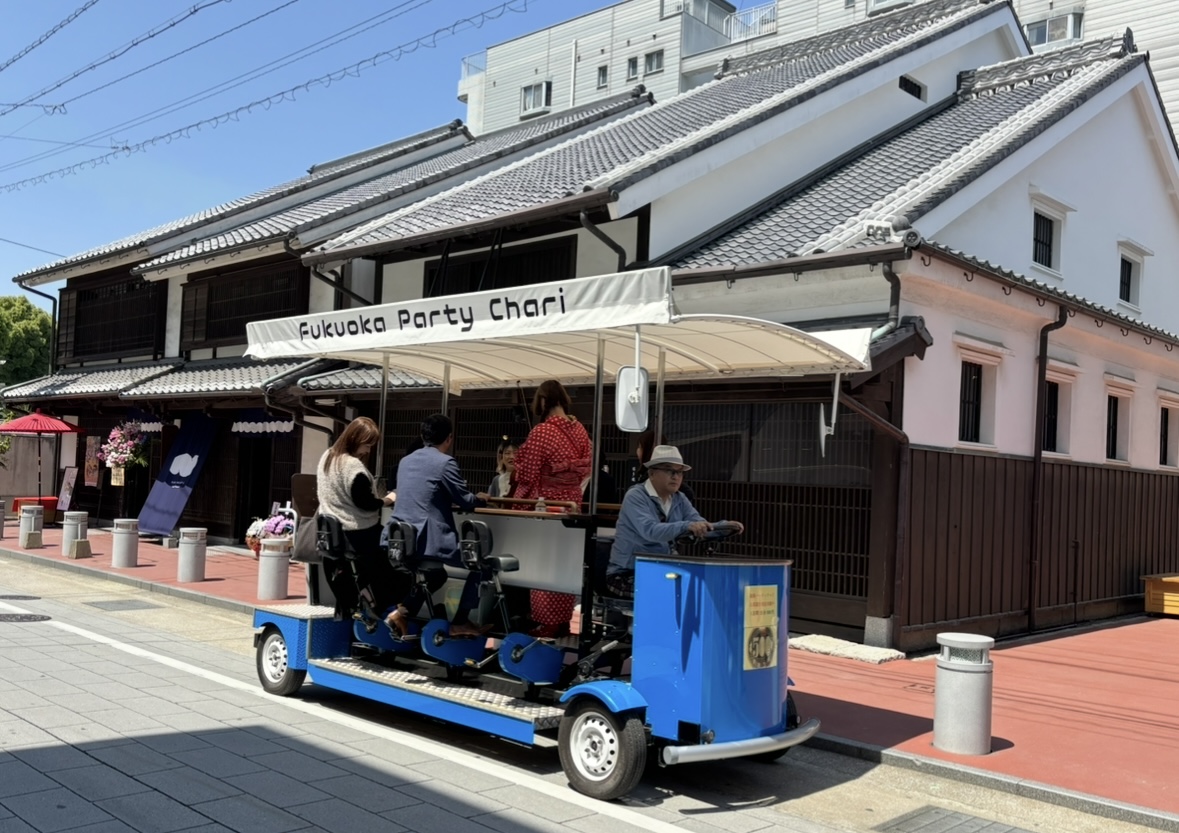 昨年より取り組んでいる新プロジェクト「福岡パーティチャリ」いよいよ公道運行に向けて始動致しました。第一弾の運行場所に関して検討した結果、博多人力屋の観光拠点で4月29日(昭和の日)まずは実証実験として無事にデビュー。昨年、海の中道海浜公園イベントでお世話になったプロバイオリニスト麻衣子さんも応援に駆けつけてくださり華やかなスタートとなりました。今後運行コースや料金設定を十分考慮した上で、本格運用に向けて尽力致します。