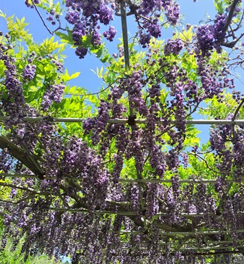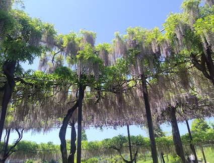 普通の藤棚と違い、丸く作ってある棚もあり、日差しが入っていました。