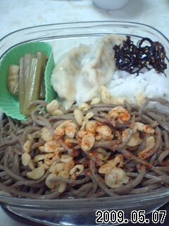 そばを茹でて水気を切り、油を絡ませながら炒め、めんつゆで味付けします。