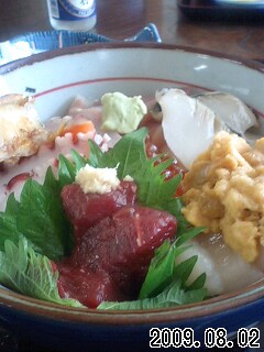 海を見たら食事という訳で、海鮮丼をいただきました。