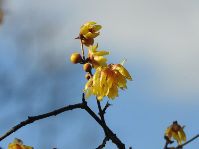 風も無くあたり一帯に馥郁と甘い香り。近づいてみると芯に花の模様がくっきり浮かぶ!普通はうつむき加減に咲くのでいままで気がつかなかった。三枚目のように咲いているのは日当たりの良いところ。