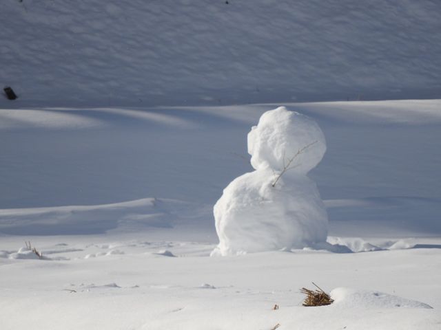 誰が遊んだのか田圃に雪達磨。何時までも残って居そうでしたが、そろそろ形崩れそうです。と言うのも今日は立春以降なら春一番と呼べる風が吹くとか。確実に季節の境目感ぜられる日になりそうです。