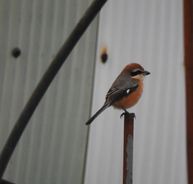 農家の裏庭に冬の鵙。いつも同じ棒、枝先に我が庭を守る如くいる。烏瓜も干涸らびてまだぶら下がっている。これも雪が少なかった証拠、今朝はその雪掻きから一日が始まる。