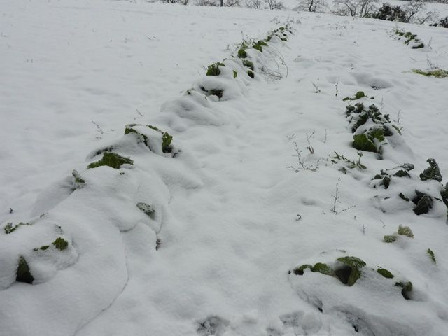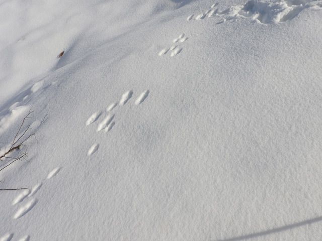一枚目,二枚目は兎の足跡。一枚目から解るように同じ場所通る。これを見ると小学生の時針金を買って罠を仕掛けたこと思い出す。同級生の家の近くの林に私は三十分ほど歩いて日曜出掛け、次の日曜に回収の筈がいつも切れた針金があるだけ。何回かくり返したが、友達は歩いて5分、10分の距離。有る事に気づいてそれから止めた。三枚目は道路の脇の足跡、小動物の巣があるのだろう。