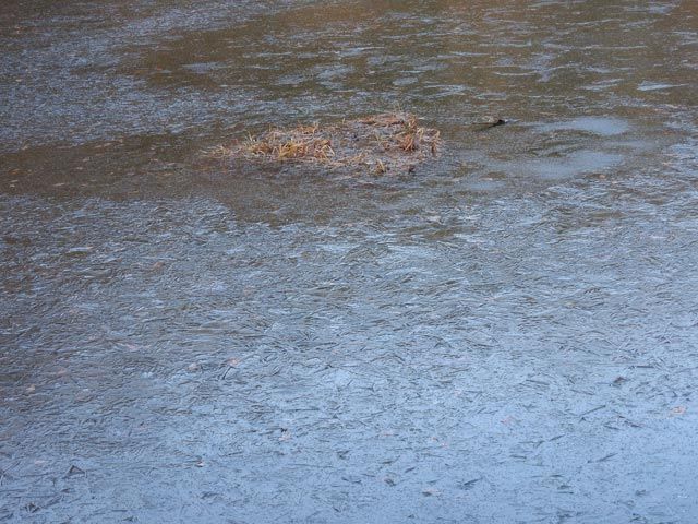 今朝は我が家の寒暖計でマイナス5度ですが昨日はマイナス8度でした。ワンコの飲み水が厚さ三センチほどに凍ってレンズの様になってました。画像は凍り始めの池の氷ですが今は厚さも増して歩けることでしょう。氷上のワカサギ釣りも賑わっていることでしょう。