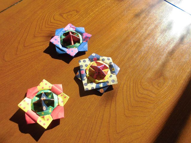 義姉の手造り限界集落と言う言葉がありますが、冬は出かける事も無くこんな手慰みの日もありますね。子供の頃想いだして廻してみますが、姉は作るのが楽しみの様です。色紙を工夫してテーブル一杯に独楽の花を咲かせておりました。