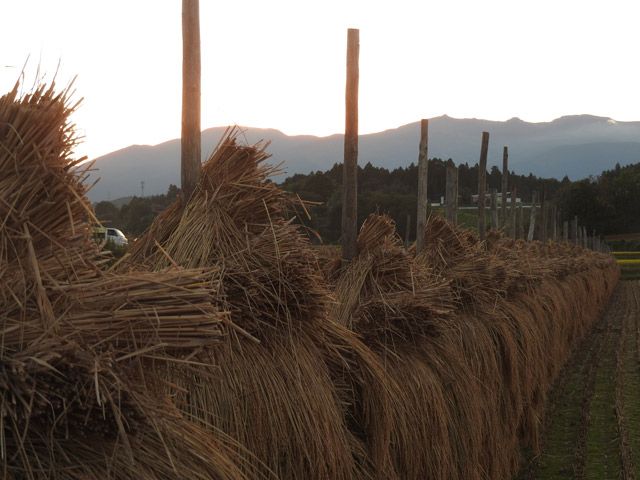 稲棒(ぼっち) 今の夕暮れは早く入り日も忽ちに山の陰に落ちてしまいます。昨日は一日子守で疲れ果てましたが中々寝てくれないときはすこしそのまま泣かせておくことにしました。その後だっこすると三歩で寝ます。そんな事を覚えた一日でした。