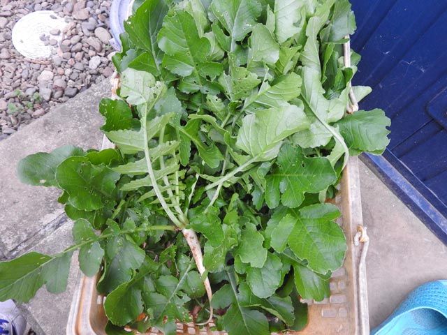 一般的には間引き菜ですが小さな大根のおろ抜き菜も便利ですね。おかずを一皿増やす事ができますが若い人には喜ばれません。これに鮭の切り身でもあれば老夫婦は満足です。間もなく大根も普通に楽しめそうです。