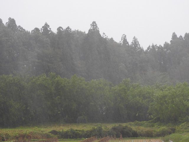 真夜中から何度もエリアメールが来て、高齢者は避難しろと言う。北東からの風に雨、玄関の庇が役に立たない。朝飯も終わって家に閉じこもっていたら突然雨風止んだその後晴れた。電車は全てとまり洪水まであと一歩で被害免れた。散歩したら用水路が溢れ冠水した田んぼもある。稲刈り終わってない人は被害あるだろう。