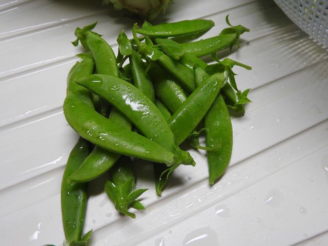 その時乾いていた筈のキャベツから雫が落ちる。二枚目のキヌサヤは濡れているのは