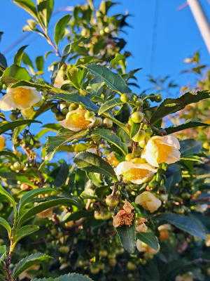咲き出した茶の花ですが