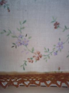本日は、お裁縫教室の日お昼から 始まったし 高校野球の 決勝だったし。 久し振りに ミニーと 会ったし。というわけで、すっかり 話し込んでしまって、始めたのは 3時頃から。時間も あまりないので、今回は 洗面所のカフェカーテン を 新調 しました上部を わざと 少し 開けて、朝の光を たっぷり 取り込みつつも、視線は 遮りたい色々 計ってみた結果、一番 バランスがいい と思った サイズで 決まり 突っ張り棒を 通すだけの いつもの 簡単 のれんスタイル できあがったら、なんとまぁ 可愛いことだって 今回は 裾に レースまで つけちゃったんだもん!自分で作ったものって、いつも 素敵って思うけれど (自画自賛?)なぁんて うっとりして、いざ 窓に つけてみたら…あれれ?なんか、寸足らずって感じ??あっきの評価もイマイチ。。。でも、ま いっか!次に いい案が 浮かぶまでは、このままで いきましょ!細かい お花柄 なんて、この おうちには 今まで ありえなかったもの だけれど手を 洗う度 歯を 磨く度に、なんだか ルンルン(死語?)気分に なれるんだもん 春 だから、朝の 始まりの 場所も 明るく 楽しくね ルンルン~~