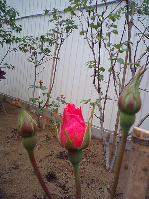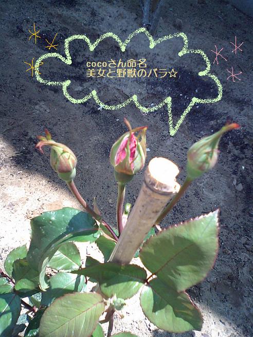 とっても いい お天気 今日は、我が家の お庭で 元気のいい、 蕾達を 集めてみました ↑ 17日に 載せた バラの、新しい 蕾 です 今回は 色が 濃いような 気が しています 。↑ 22日に もっと 小さい状態の 蕾を 紹介した バラ です 。オレンジがかった 大きな 蕾で、 この位の 状態の 蕾が、 あと 5つ あるんです !どれが 一番 最初に 咲くのかな ↑ どんどん 伸びている ツルウメモドキ 小さい 小さい 花が 咲くようで、 蕾が たくさん できて きていますが本当に 小さいの !! 見えるかな 。。。 ↑ この木は なんていう 名前 なのか、 未だ 不明 。。。 チョコレート色の 葉っぱが 個性的で、シックで 可愛いんだけれどどの位 大きく なるのかも、どんな 花が 咲くのかも わからないので ワクワク します 小さい 黄色の 花 のようなものが ひとつだけ 咲いています 。↑ 最後に 昨日に 引き続き、この ピンクのバラの 蕾 この バラは、 次々に 花が 開いてくれるので枯れそうなものは どんどん 摘み取って あげられます そうすると、 次の蕾に きちんと 栄養が 行ってくれるそうなんですよ
