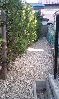 なんだか 曇り空の 朝。小雨が 降りそうな 空模様 ですが、 今日も お庭の 作業は 進みます。我が家で 一番 困っていたのが、 元気な 雑草達の 処理。抜いても抜いても、 追いつかない程 勢いよく 生えてきていました。今回の リフォームでは花壇以外の 部分には 防草シートを 敷いて 上から 厚めに 川砂利を 乗せます。本当は 芝生に したかったのですが、 土壌に 合わないし 管理が 大変 とのこと。いつか 余裕が できたら、 ということに しました。悩まされていた 雑草対策は これで 万全 に なりました昨日までの 作業で、 花壇に 植え直す 木々は 一段落。トラック類が 庭に 入ることも もうないのでまだ 残っていた部分に 防草シート + 砂利 の作業をされるそう。私は 花壇に 小さな苗木や 花を 植えたり家の 裏手に 作っている 畑の 作業を。石と 石の 間の、土留めの タマリュウも、教えてもらいながら 自分で 植えた。案外 簡単! しかも なんだか 楽しいぞ~ お昼前 には、すっかり 晴天に ディーラーから、修理していた カーオーディオが 直ったので取り付けるのに 車が 必要 との 連絡を もらうまで夢中になって ずーっと 植え方 してた 土いじりって、いいねぇ 今更 気づいちゃったよ