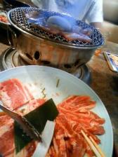 昼は、家族で焼肉屋に来て、長男と焼け食いしてます。