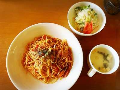 あーちゃんはパスタ、夫は焼き鯖定食・・・