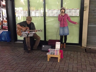 マイミクさんの西荻窪駅前路上ライブ。まぁおかけください、と言われ・・・。(笑)ラストまで魅せてくれました。