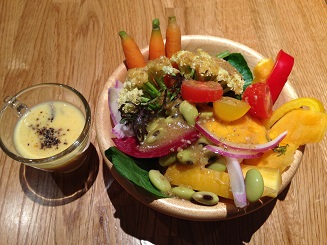 お教室で一青窈「ハナミズキ」をやったので、キー下げすると平井堅になるというのを検証してみた。2音(♭4つ分)下げで、ちょうどいい感じに。Dexee Deliの「グリル・ベジタブル&ローストチキン・トマトソース」。ゴロゴロ野菜がまいう。目黒川の「青の洞窟」。