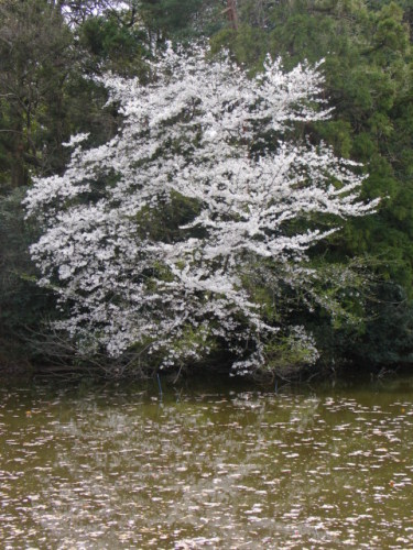 一昨夜、東京は夜に雪になるかもしれないという予報を聞いた。雪が降ってもおかしくない寒さだった。「4月に雪が降るなんて・・・絶対見たい!」そう思って夜何度も窓を開けて外を見た。屋根を打つ雨がパラパラと音を立てて、「雪かも!」と思って外を見ても降ってはいなかった。その夜私は‘なごり雪‘を口ずさんでいた。高音がうまく出ないが気持ちよく歌えた。ガラーンとした階段や踊り場で声が響くのを楽しんでいた。ふと大学で勉強していた頃の知り合いの学生さんが、「家の妹はなごり雪を聞くと必ず泣くんです」と言っていたのを思い出した。その妹さんの純真さに心を打たれたものだ。ふと、早くまた大学で勉強したいが、ままならぬ状況にあることや、郷愁に駆られるような思いがし、涙ぐんだ。それになごり雪はよくよく歌うとやっぱり泣ける歌だ。歌詞をかみしめ、また涙ぐんだ。朝、目が覚めて窓を開けると、燦々と輝く日差しの中、雪が積もっていた!やっぱり「奇跡」は起きたのだ!降っているところを一目見れたらどれだけ良かっただろう。「奇跡」を目の当たりに出来たら・・・。心は想像の中へとトリップしていった。真っ暗な夜の闇の中、きれいな白い雪が静寂に包まれシンシンと降り積もる。そこは静かな静かな世界。ただ降り積もる雪をずーっと見つめている私。雪は闇夜に照らされ、輝きを放つ。そしてそれは「奇跡」の起きる瞬間・・・。そうして昼になり、雪もすっかり解け、友人と電話でぺちゃくちゃおしゃべり。「昨日雪が降ったね。私びっくりした」「私もびっくりしたー、なごり雪だよね」「そうだね、なごり雪だね」