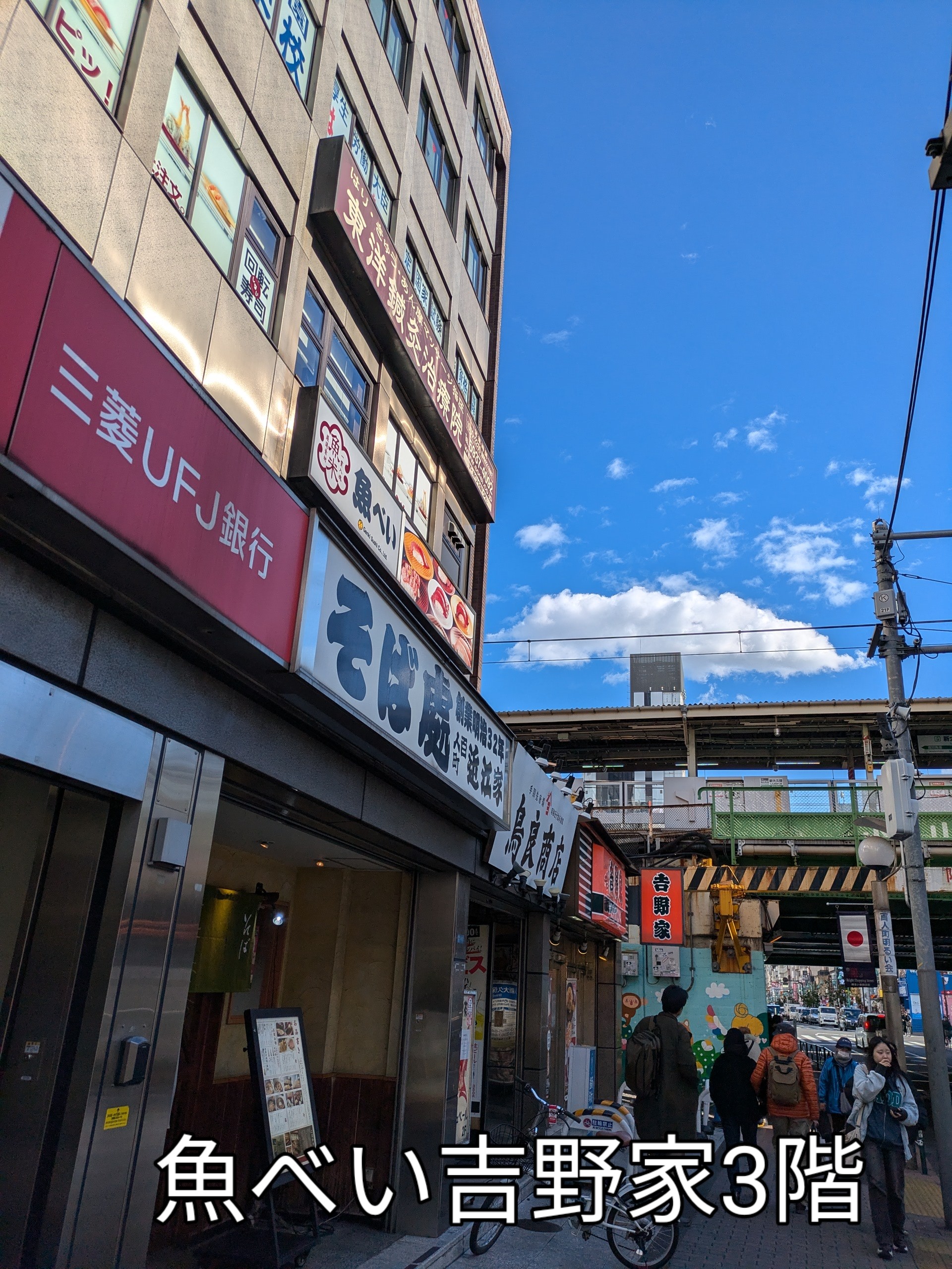 魚べいさんの入口には三菱UFJ銀行がありました ガードの手前です