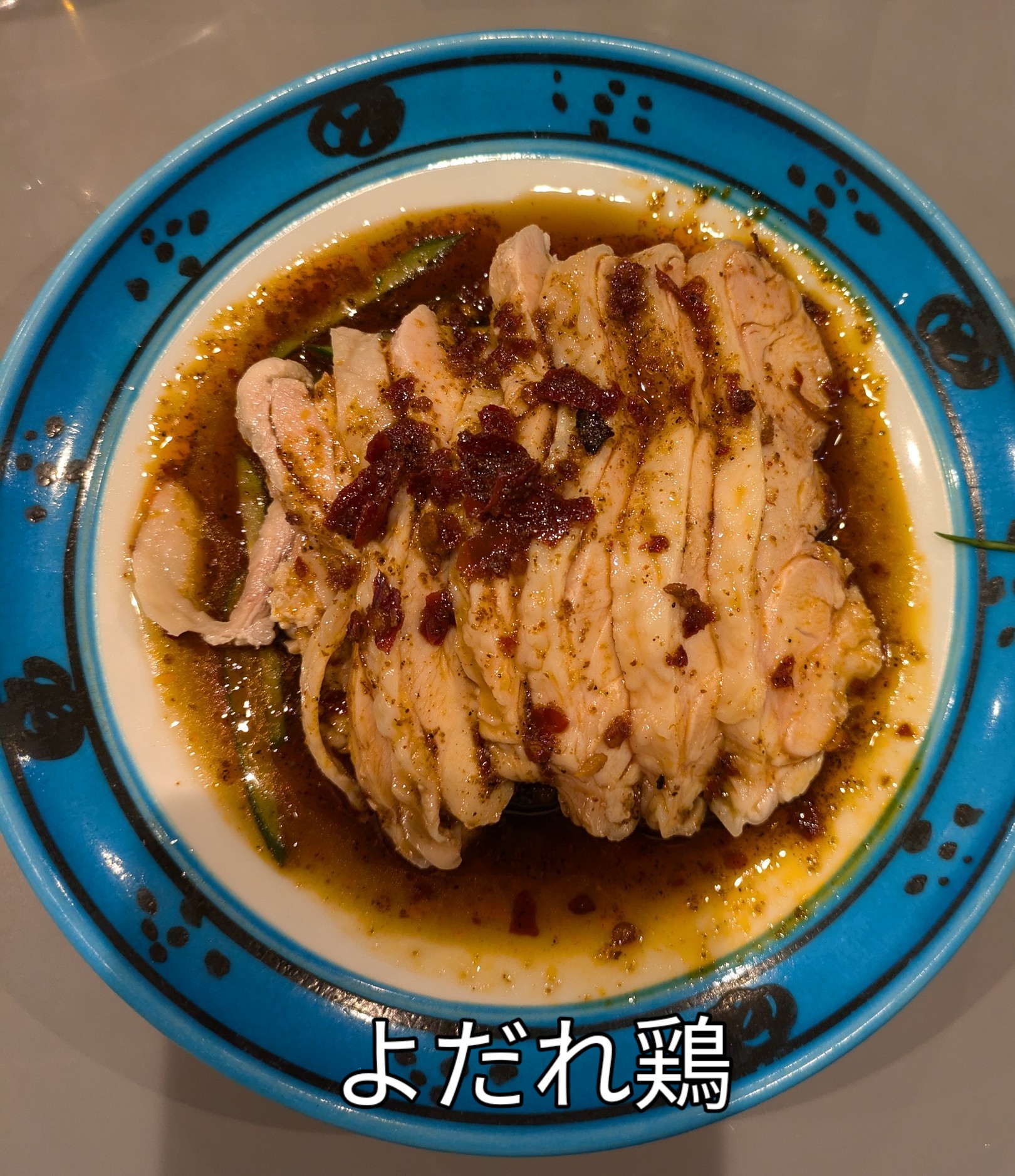 よだれ鶏は紹興酒のおつまみでシェアして食べました ピリ辛鶏が美味