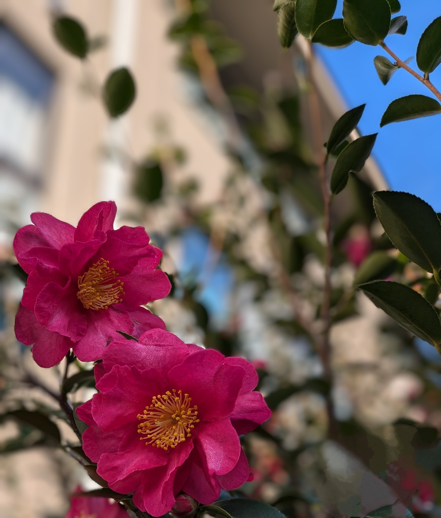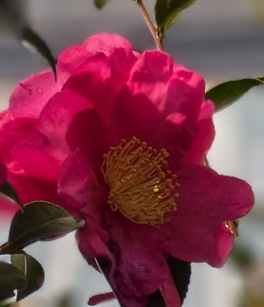 山茶花の花をアップ撮影しました スマホで背景をぼかしました