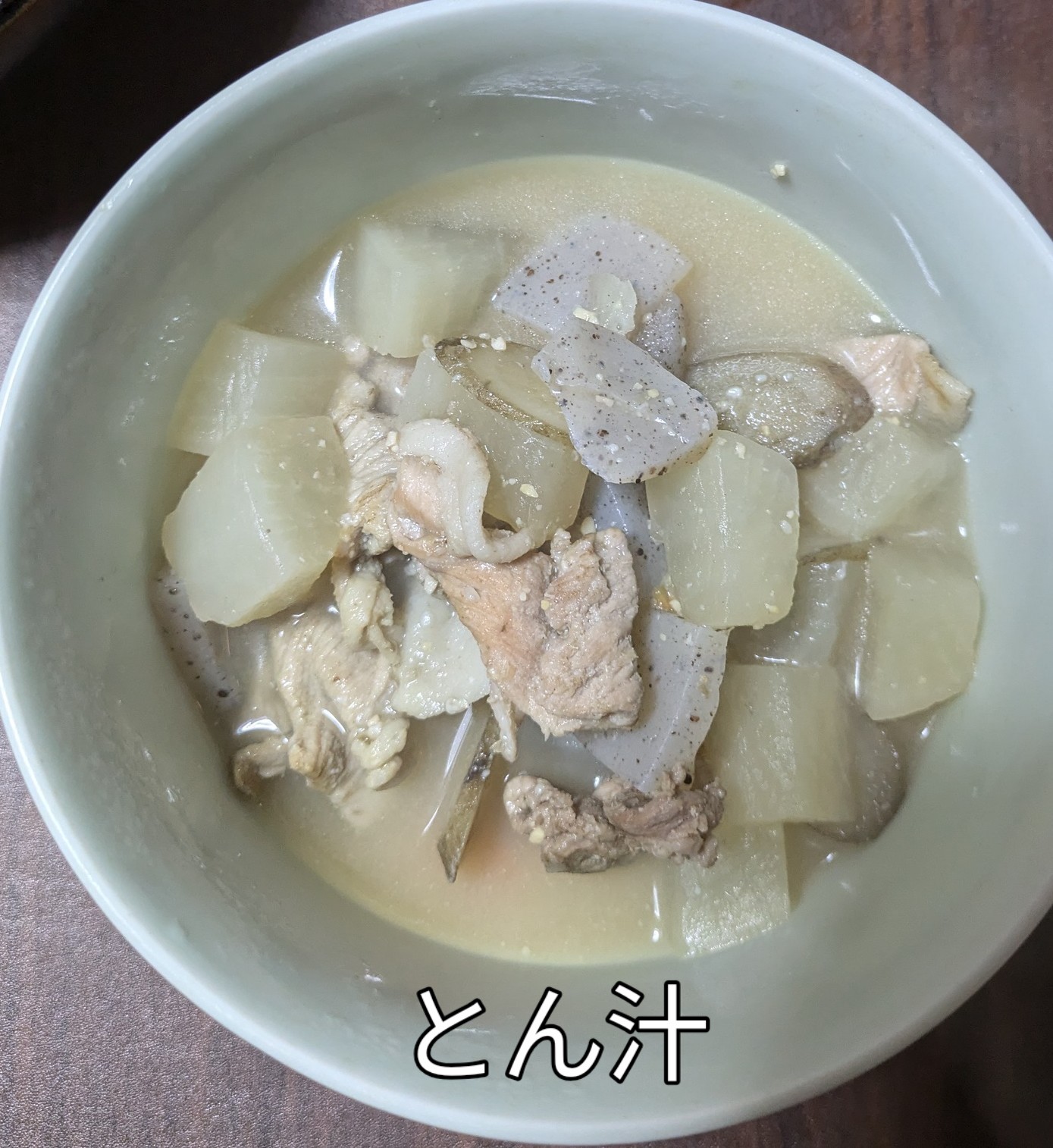 男料理(夕食)白味噌の豚汁 豚肉 大根 蒟蒻 牛蒡 入り
