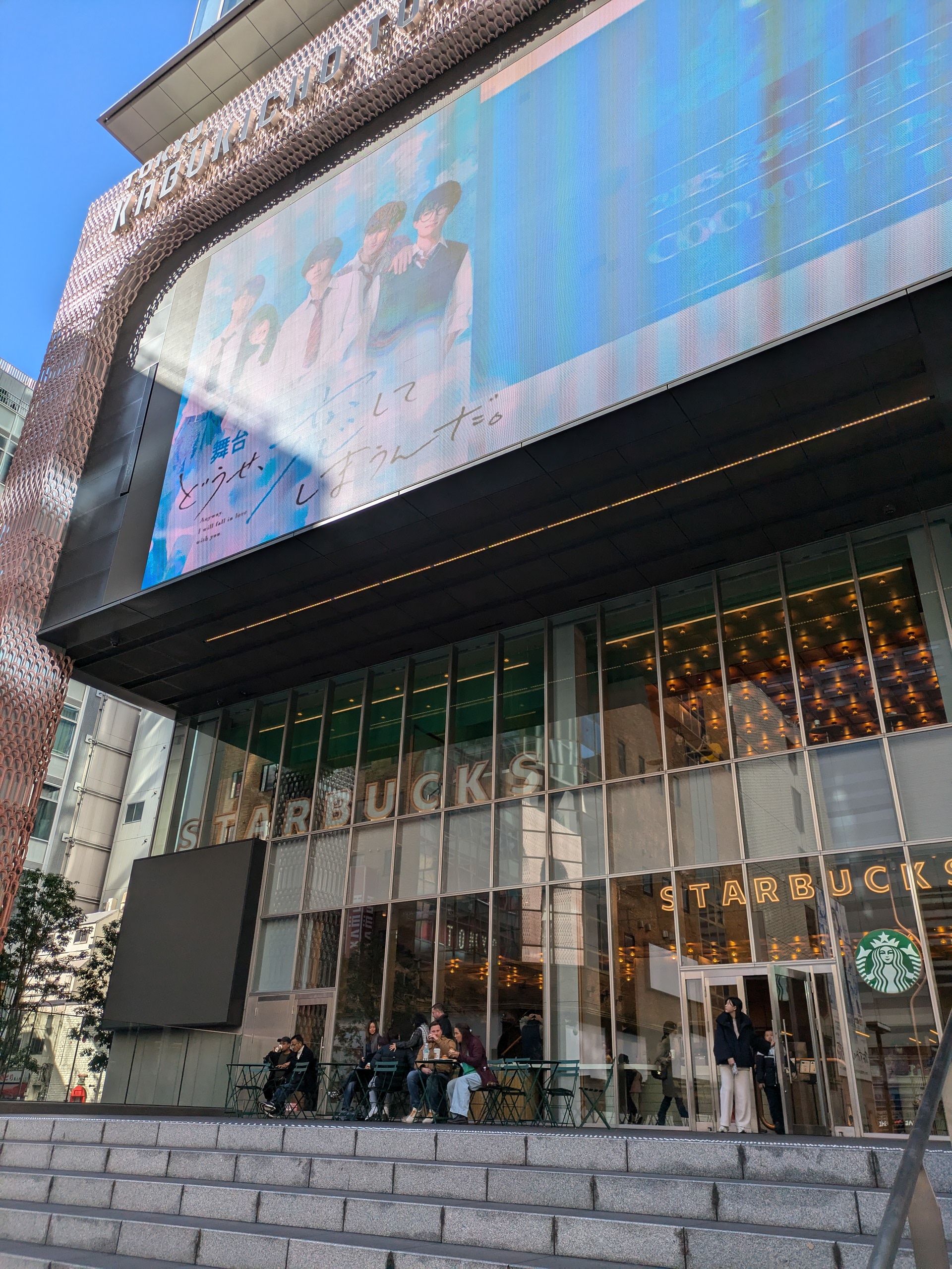 歌舞伎町タワー下にあるStarbucks 寒い日なのに外のテーブルに人が