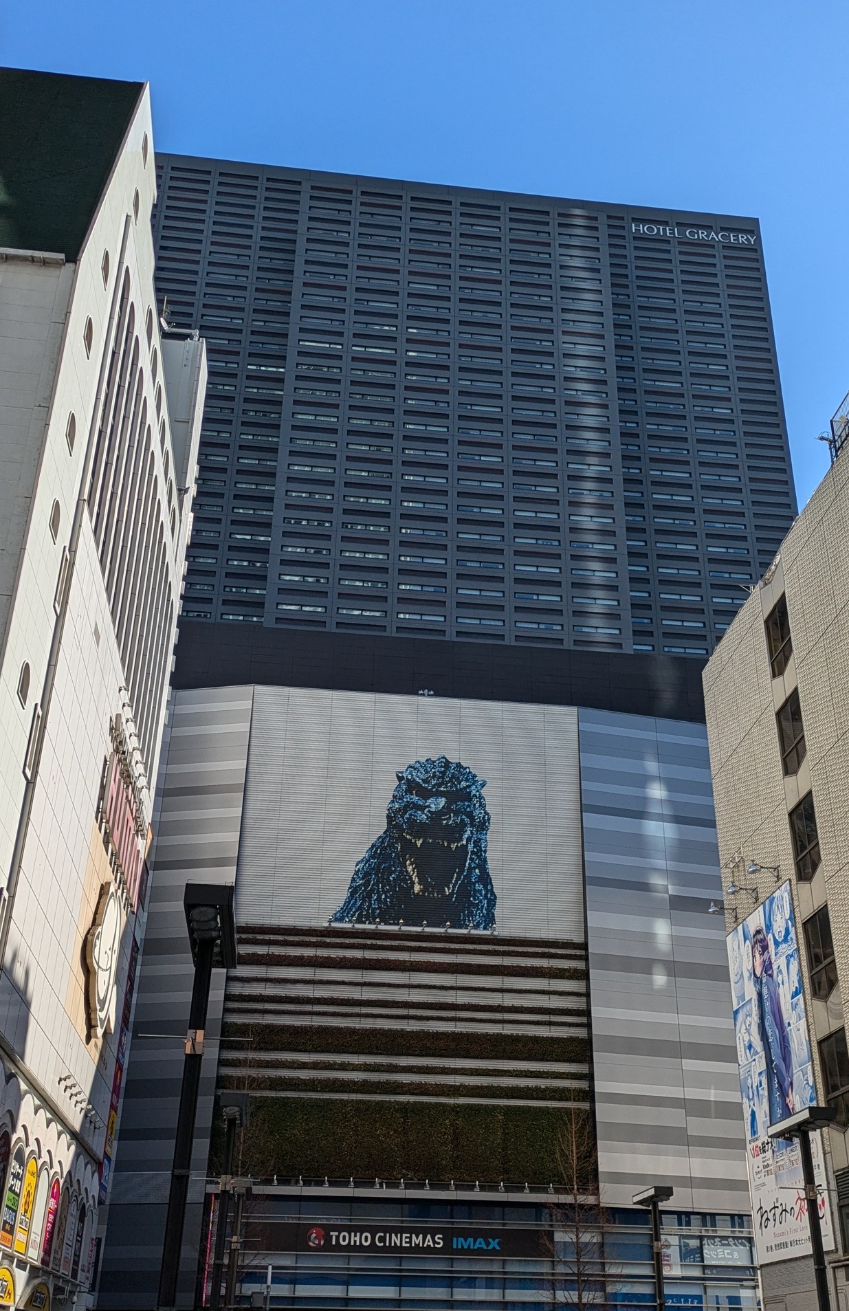 HOTEL GRACERYの壁にGODZILLAの絵が 歌舞伎町広場から撮影