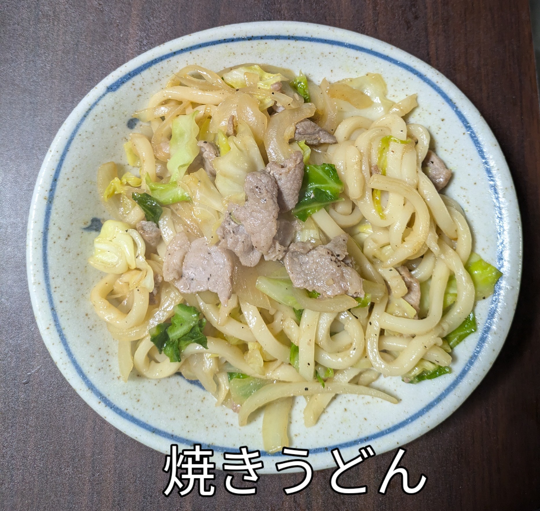 男料理(昼食)焼きうどん      豚肉  キャベツ  玉ねぎ入り