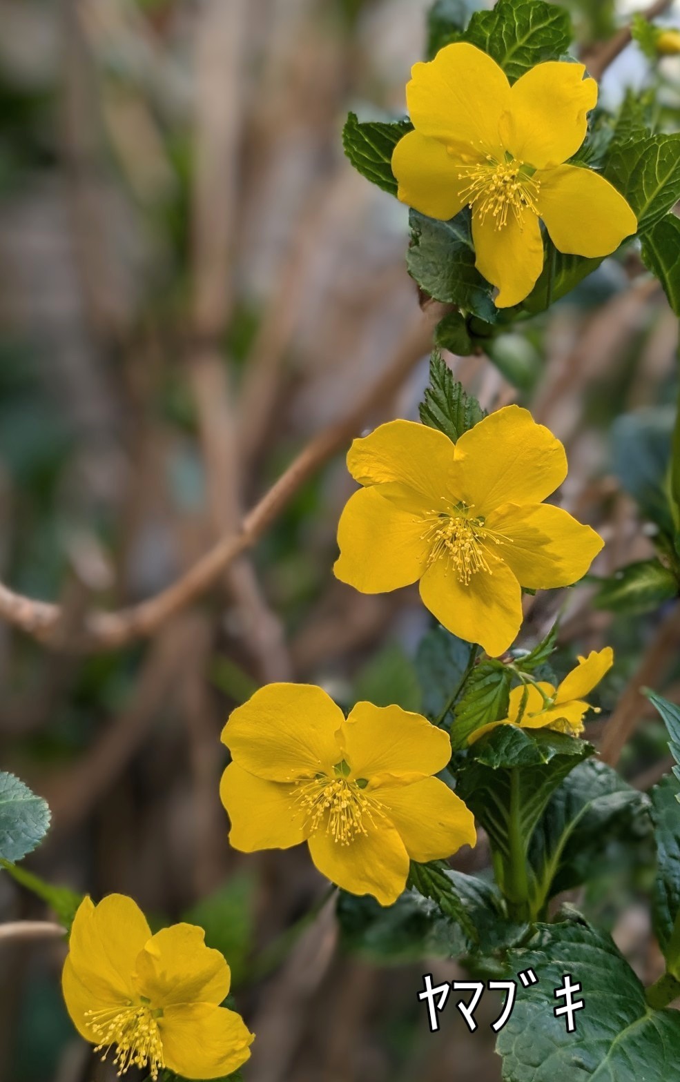 自宅近くで咲いていた ヤマブキの花をスマホで背景をぼかして撮影