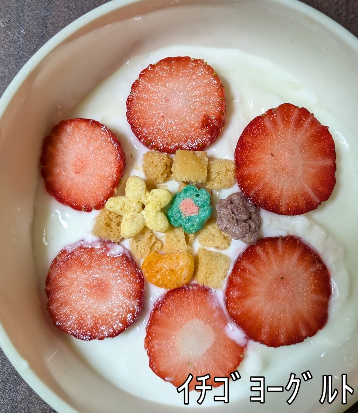 帰宅してから イチゴヨーグルトをコーンフレークでトッピング