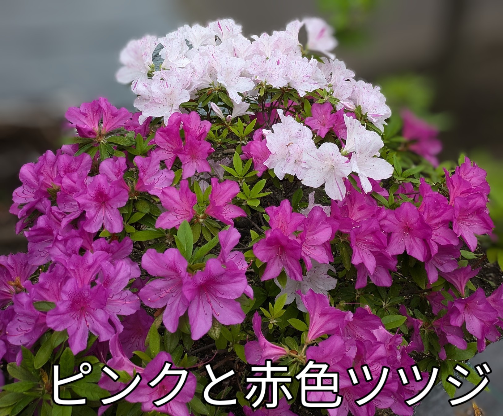 自宅前の学校の花壇の赤と白色のツツジが満開で綺麗でした